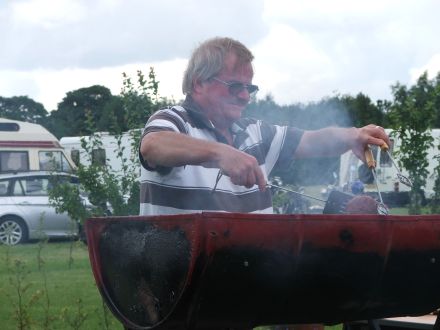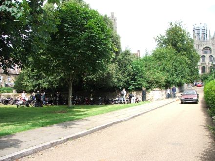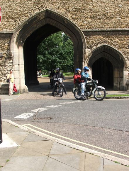 The last weekend in July saw us attending the Norwich Section's Camping weekend for the third year running. This event has become a "must do" for us as it is such a friendly, layed back event. It's a real familly event with several couples both riding and some even taking the kids along with them. We arrived late afternoon on Friday and set the caravan and awning up before heading into nearby Attleborough for a meal. For those who indulge, Bob and Cynthia do a Fish and Chips delivery from the local town. We returned later in the evening and joined the rest of the campers for a social evening around the bar. On Saturday the main run took place, a ride out to Ely via scenic roads passing Denver Sluice. The run organisers must have friends in high places as they had arranged for us to be allowed to park in the Cathedral grounds. We had a walk around Ely admiring the Cathedral from various angles, ate our sandwiches sitting in the sun and then returned to the camp site by another scenic and almost traffic free route. Saturday evening and the barbecue was in full swing along with the bar. A section member brought along an Anzani engined "Cycle Pacer" which created a lot of interest. When he started the massive engine the crowd grew even larger although most kept a discrete distance from the minimal exhaust pipes. Sunday morning and a shorter run with a coffee stop at Richard's house. Many envious comments were made about Richard's extremely well equipped workshop. He has a taste for unusual motorcycles with an "All States" and an MZ opposed twin among his collection. Sunday lunch and the barbecue was fired up again followed by a motorcycle Gymkhana with limbo, slow riding and moving tennis balls from traffic cones into buckets while riding along. We stayed over for Sunday evening with several others, some were heading down to the West Kent International ready for the next weekend. Many thanks to Norwich Section for organising such an enjoyable event, save us a space for next year please! |