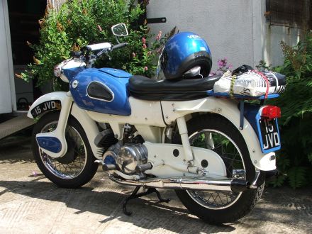 Richard owns some very rare machines, this is an "All States", a Puch split single re-badged and sold by Sear's Catalogue. |